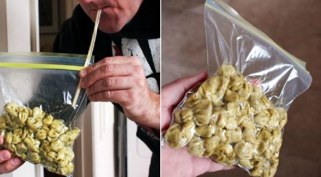 If you don't have a commercial vacuum sealer all you need to do is put your food into a resealable bag. Insert your straw into the bag before closing the seal and then suck as much air as you can from the bag.