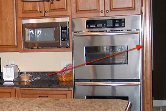 Remember to leave space between furniture and architectural details such as the door frame to the right of the oven.
