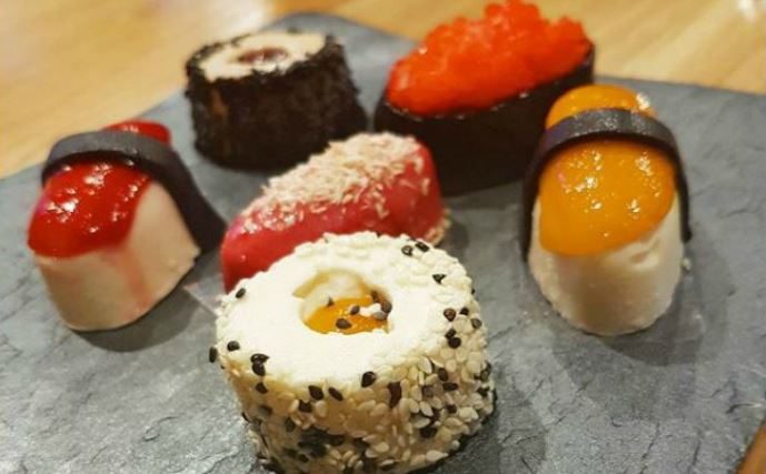 It looks like the classic sushi but it's a delicious ice cream prepared with the same forms and colors as the typical Japanese dish.