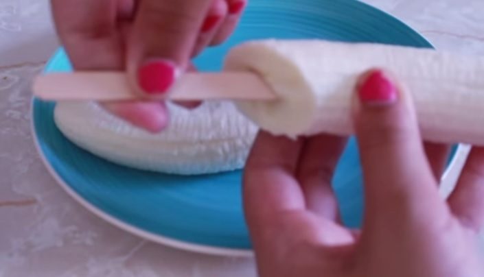 A popsicle made up of a banana covered in melted chocolate and sugar sprinkles. A treat for your palate, simple to make.