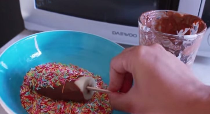 Dip the frozen banana in melted chocolate: here's what you get