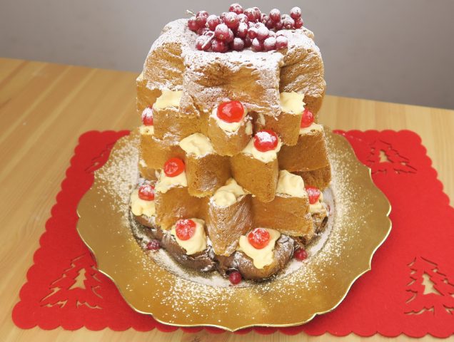 Pandoro Christmas tree cake with mascarpone cream
