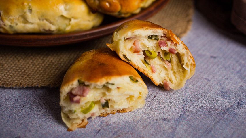 - Add some more filling and form a dinner roll. Set aside for 30 minutes, then cover with egg wash and bake for 25 minutes.
