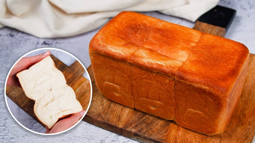 5. Brush the top of the bread with some melted butter then cover the pan with any heavy and heatproof board or a baking sheet.